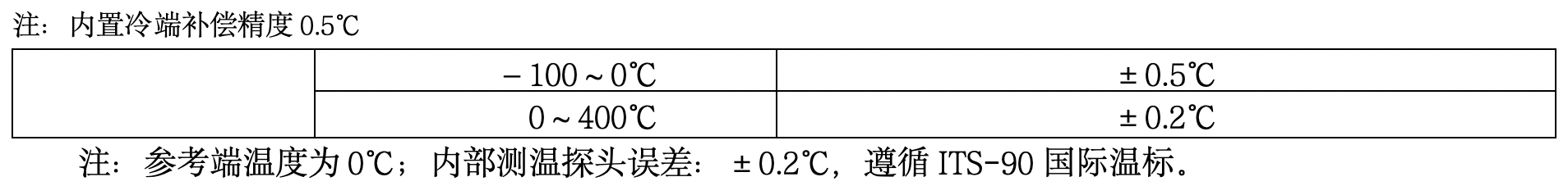 l 熱電偶測量和輸出提供內(nèi)置、外置和手動3種冷端溫度補償方式,其中外置參考端采用A級Pt100鉑電阻;