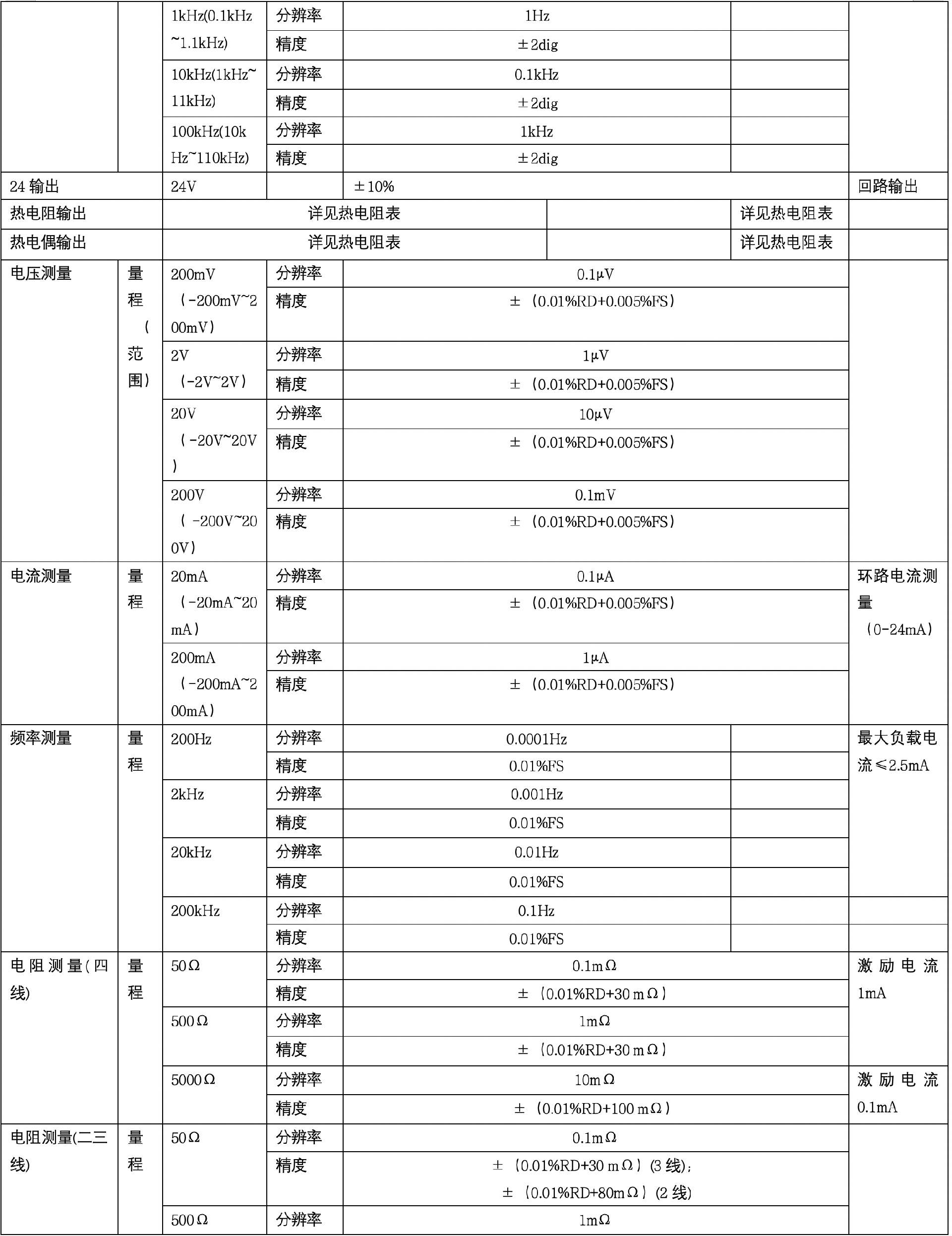 l 電阻測量可選二、三、四線3種方式;